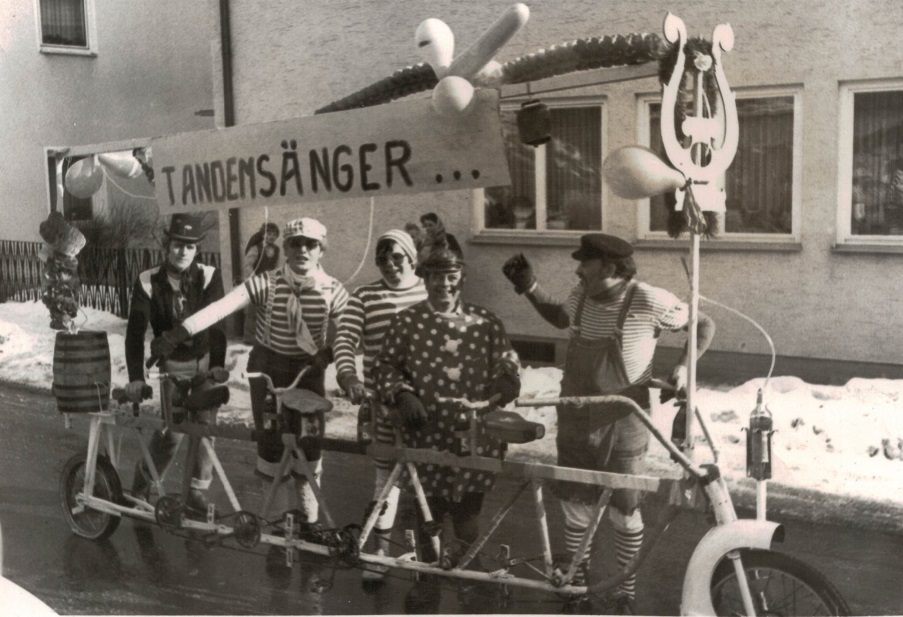 Erwin Klotz stellte ferner die von ihm verfasste Vereinschronik vor. Xaver Gallitzendörfer wurde zum ersten Vorsitzenden gewählt, Wilhelm Hartung sen. zum Stellvertreter, zum neuen Schriftführer für den nicht mehr kandidierenden Chronisten Erwin Klotz Wilhelm Hartung junior. Den Gaudiwurm am 25. Februar bereicherte der MGV mit einer originellen Tandem-Fahrrad-Besatzung.